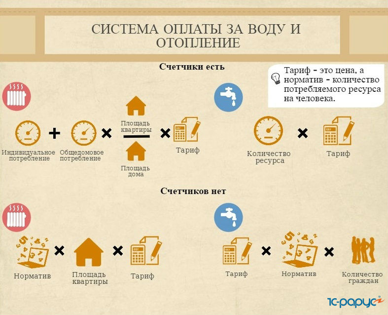 Итоговая сумма по той или иной услуге зависит от наличия или отсутствия общедомовых и индивидуальных счетчиков и рассчитывается несколькими способами.