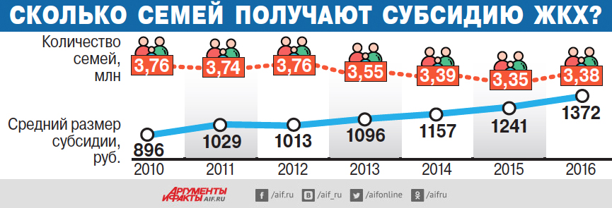 «Не путайте субсидию и льготы по ЖКХ, — говорит исполнительный директор „Школы грамотного потребителя“ Александр Козлов. — Льготы предоставляются определённым категориям — ветеранам, инвалидам и т. д., а субсидию может получить любой гражданин. И неважно, где он живёт — в частном доме, в собственной квартире в многоэтажке или снимает соцжильё. Главным критерием получения является доход человека. Федеральное законодательство установило: максимально допустимая доля расходов семьи на оплату ЖКУ не может превышать 22%. Если траты больше, значит, всё, что свыше, должно компенсировать государство в виде субсидии на оплату ЖКУ. По данным Росстата, её получают 3,38 млн семей, а это 6% от всех семей России. У одних субсидия 3 тыс. руб. в месяц, у других — 500 руб. в месяц. Средний размер по стране — 1372 руб. в месяц».