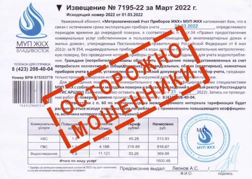 Во Владивостоке мошенники снова активно рассылают фальшивые квитанции о поверке счетчиков.