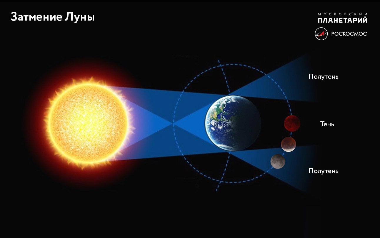- В 14:48 мск Луна полностью погрузится в земную полутень и коснется земной тени — начало частного затмения. Луна начнет погружение в тень Земли.