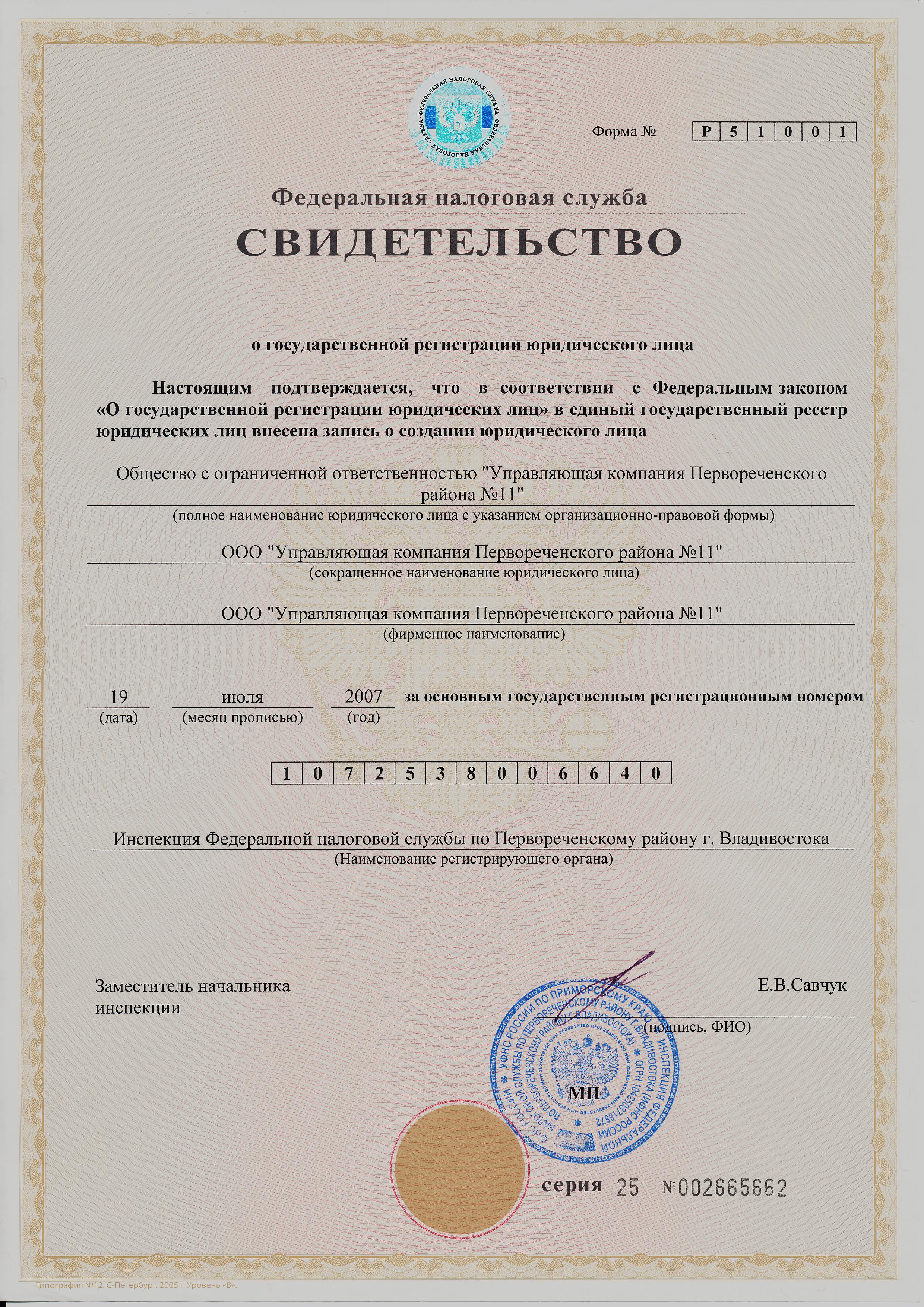 | 6 | Основной государственный регистрационный номер/основной государственный регистрационный номер индивидуального предпринимателя (ОГРН/ОГРП) | 1072538006640 |